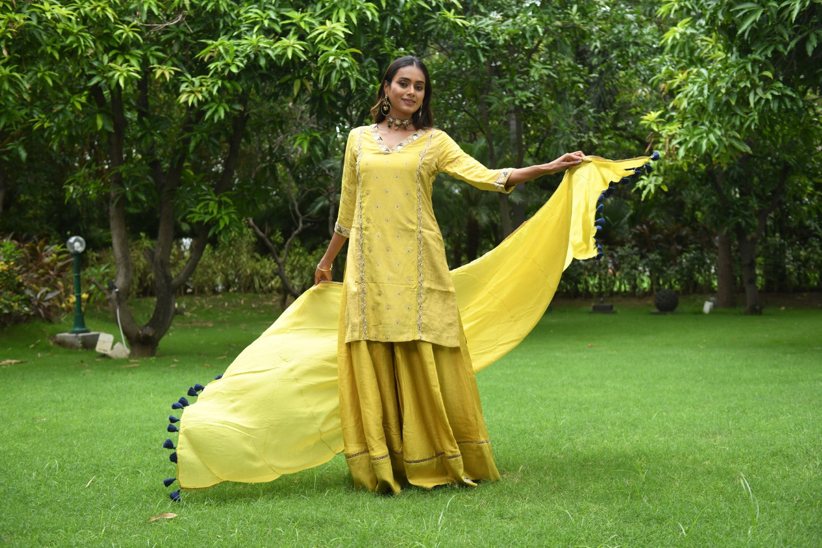 RAW MANGO GREEN EMBROIDERED A-LINE RIWAYAT KURTA SET
