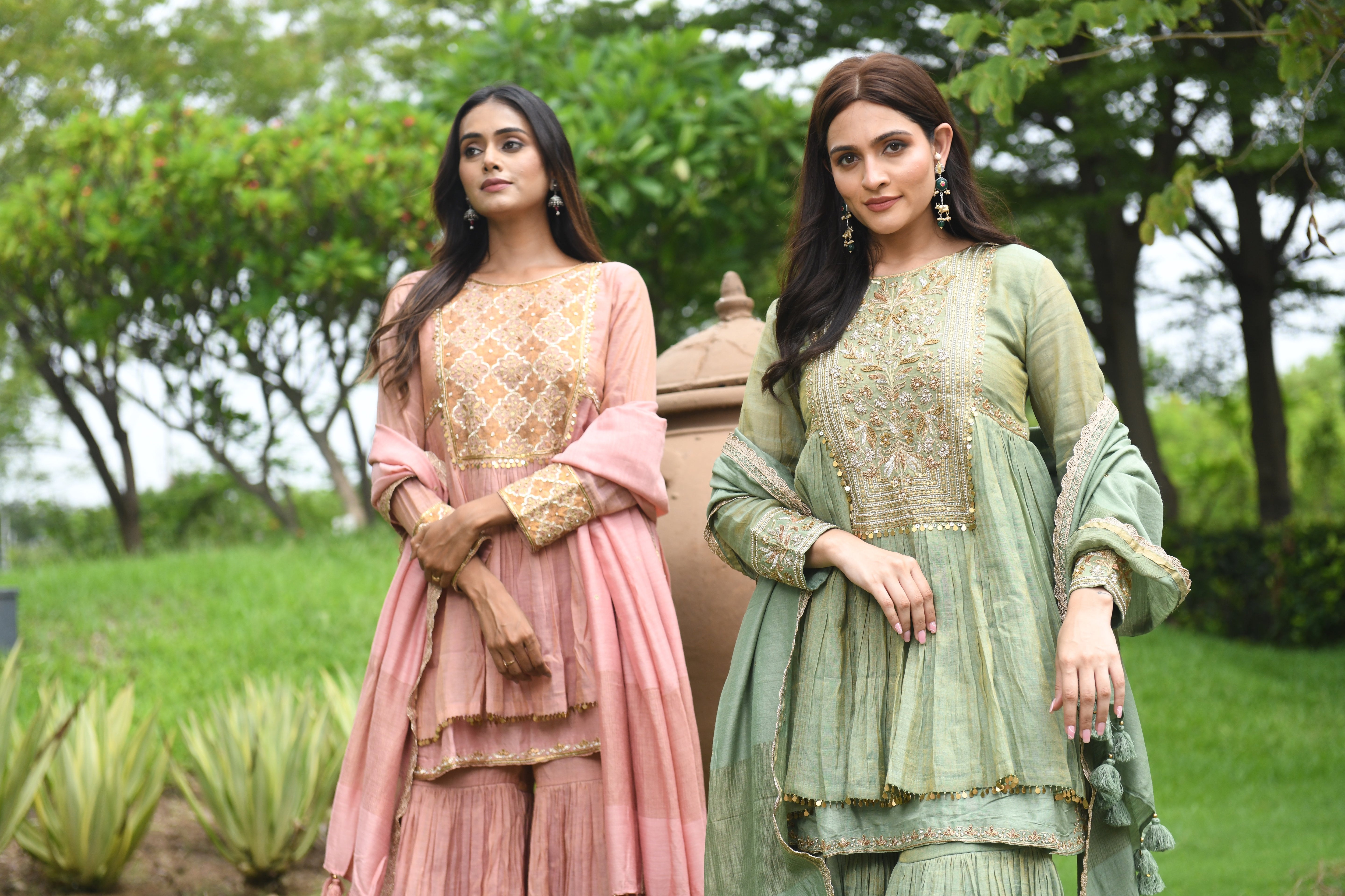 SEA GREEN RIWAYAT TISSUE SHARARA SET