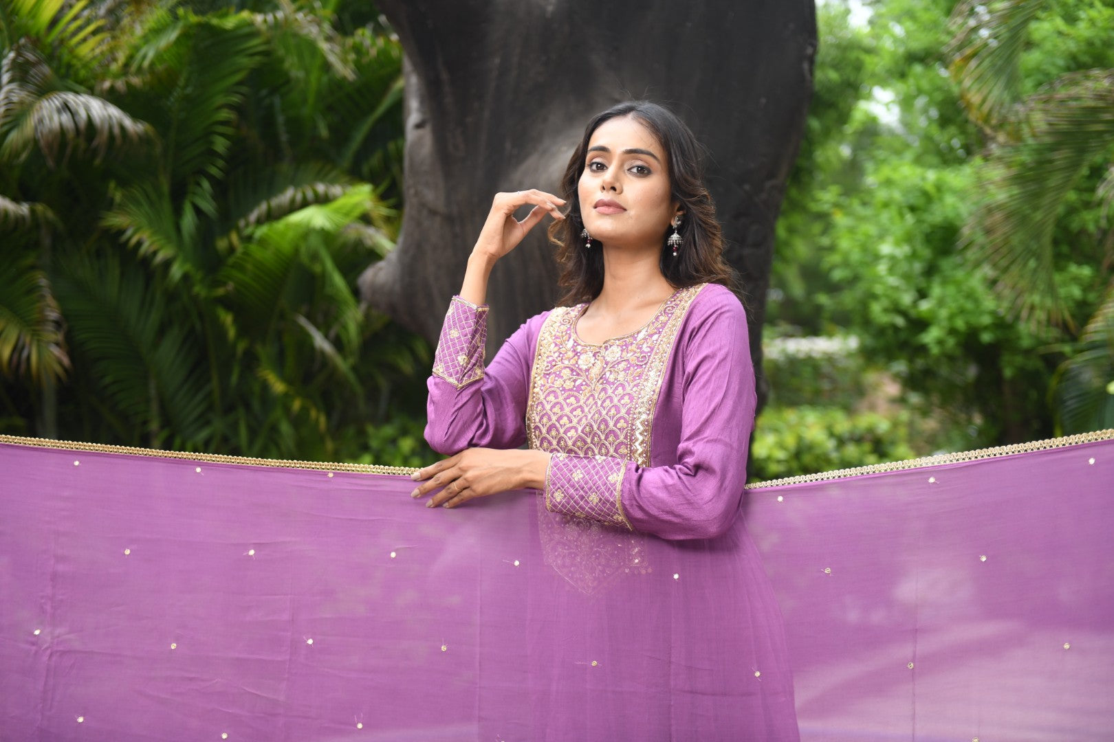 PURPLE EMBROIDERED RIWAYAT ANARKALI SET